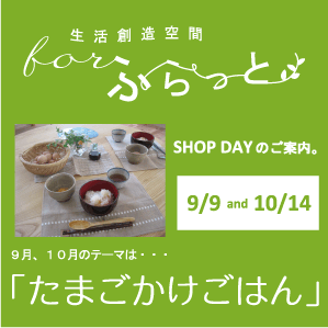 生活創造空間「ふらっと」SHOP DAY 9/9(日)10/14(日)開催します。